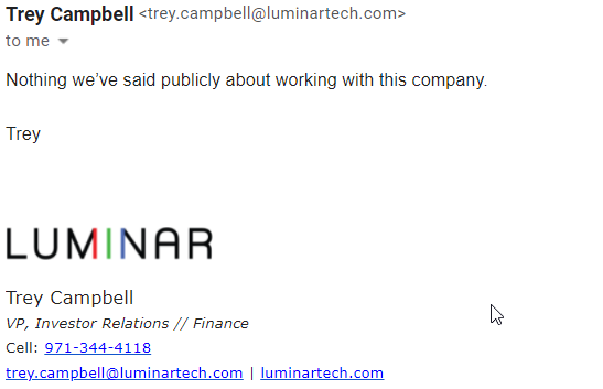 Anyway I am happy to be proven completely wrong but I do not think the article you have linked proves a Luminar Valeo relationship other than as competitors.