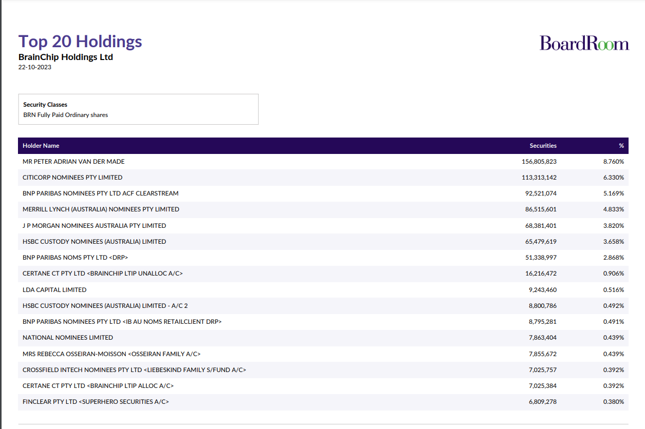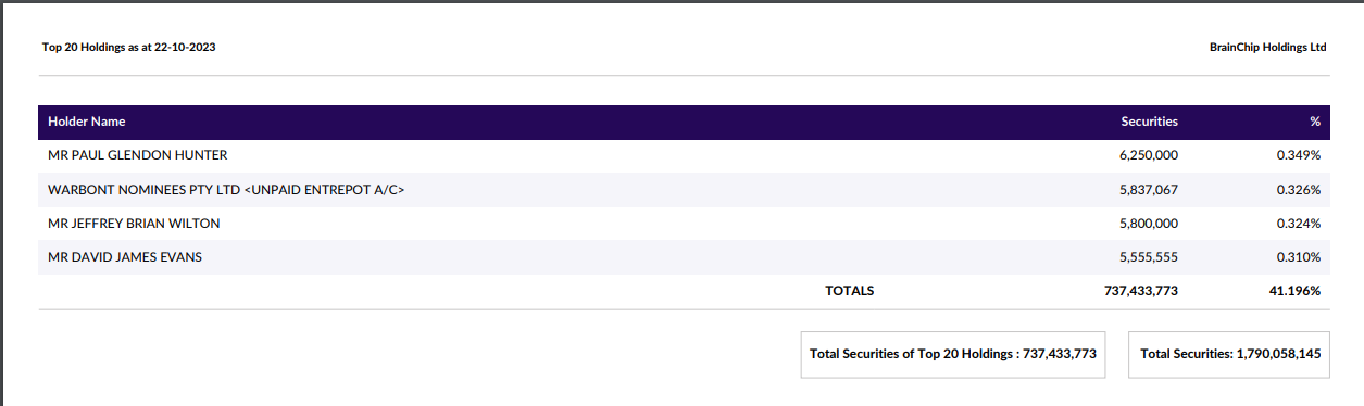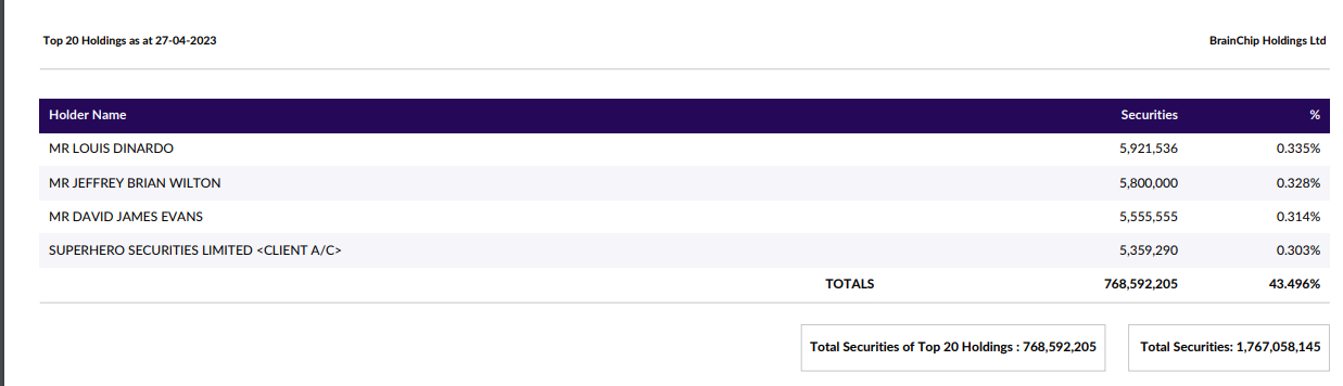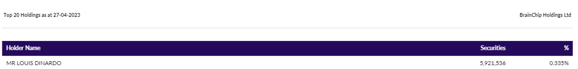 Looks like Di Nardo has sold at least 365,981 shares. Because that's the difference between 5,921,536 that he held in April, when he was in the top 20 shareholders, and the 5,555,555 shares held by no. 20 in the October list.