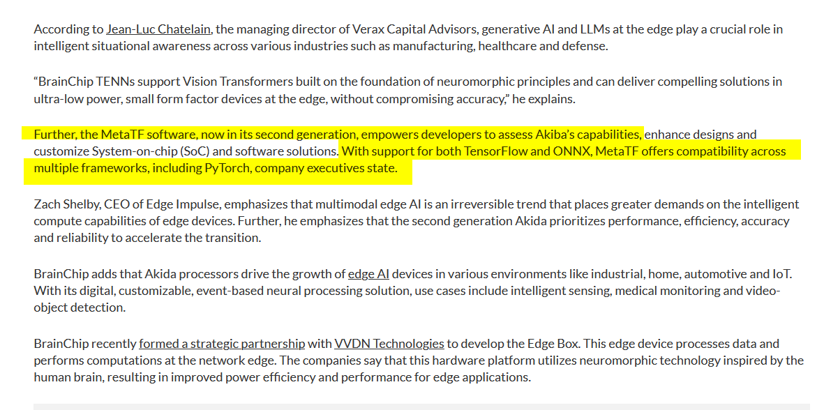 IMO all the eco-system and partnership milestones should have been announced on the ASX this year and last year, I really think that some of the ecosystem milestones were quite likely price sensitive material i.e. the deal with Global Foundries to fabricate a new iteration of Akida - that deal demonstrated the ability of Akida to be fabricated by different manufacturers using differing fab formats - that is a major outcome for the Akida tech and as such is worthy of Price Sensitive.