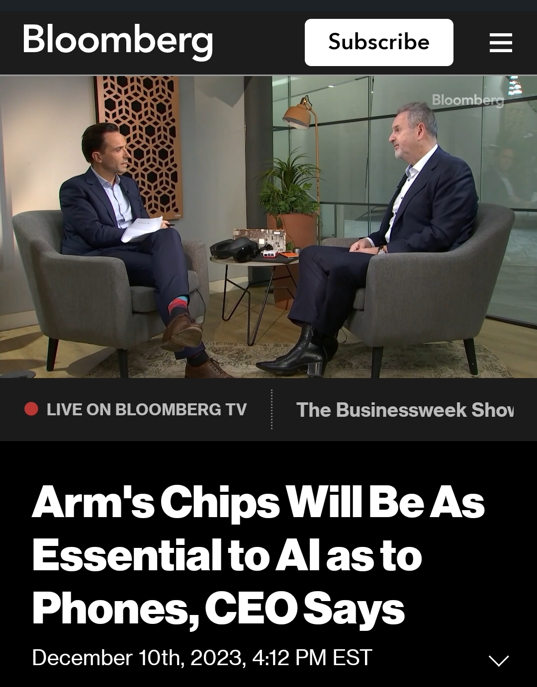 the questioner said every AI CEO he speaks to the scramble for compute as well as talent is front and centre. The ARM CEO said there is an increasing demand for more and more compute but it will also drive a higher degree of power efficiency. Went on to say the power required by these future data centres is higher than what is generated today. ARM's DNA is about power efficiency