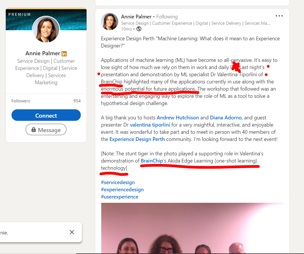 Brainchip will be disrupting markets that don’t exist yet!I was trawling through LinkedIn and found this.................Annie Palmer works for IBM ix, which as far as I can tell is a subsidiary of IBM.