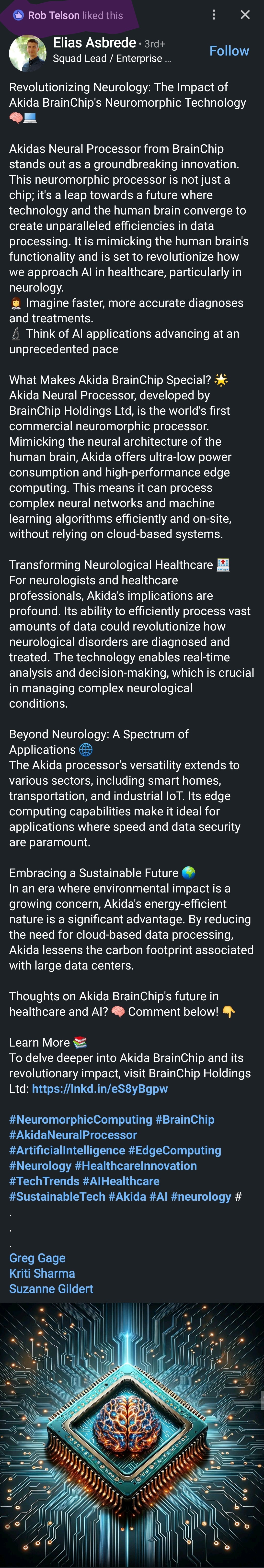 Innatera, a spinout from the University of Delft, has grown to 65 people with recent funding from the European Innovation Council (15.5 million Euro) alongside Matterwave Ventures and MIG Capital.