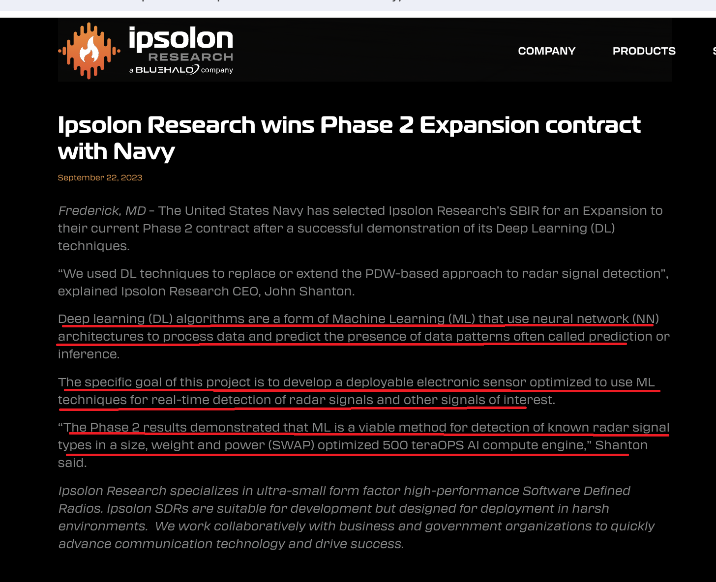 I’m positive it’s been discussed before but Ipsolon is one of BlueHalo companies who would definitely be interested in our tech given their offerings and tech development: