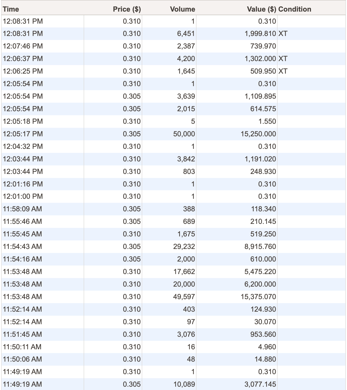 32c incomingSeems like someone is happy to take everything available at 30cents, but not a penny more!