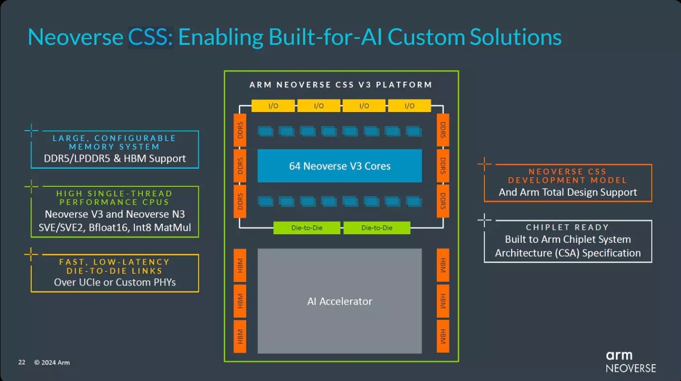 "Today we are proud to announce that Arm Total Design has expanded to include over 20 partners, all committed to ensuring broad accessibility of performant, efficient solutions that will help meet the computing demands of an AI-accelerated future. These partners are already working together on everything from verifying IP, and customizing firmware, through to building chiplets on the world’s most advanced process nodes – all using Neoverse CSS."