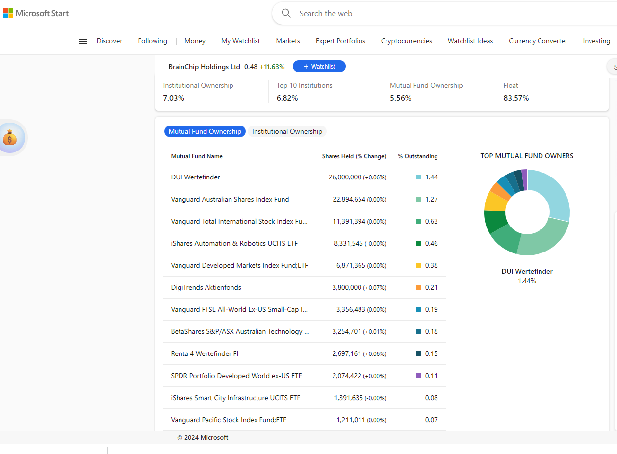 In the last few days someone posted a list of institutions that held positions in Brainchip.