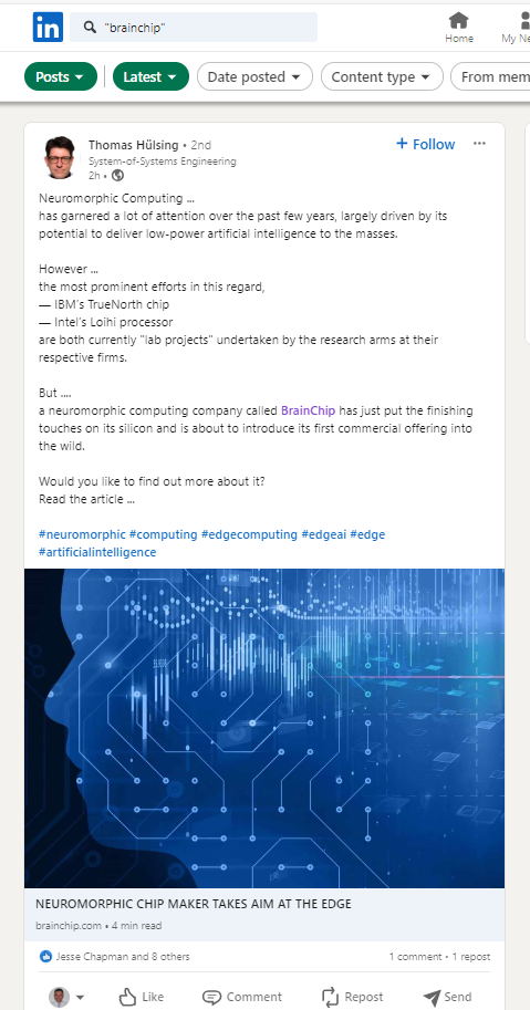 As I was doing my daily linkedin searched for the worlds most amazing neuromorphic technology, I cam across this post, and yes it is 3 months old, but does mention Brainchip. Is it just mean, or do others find the image quite amusing :)