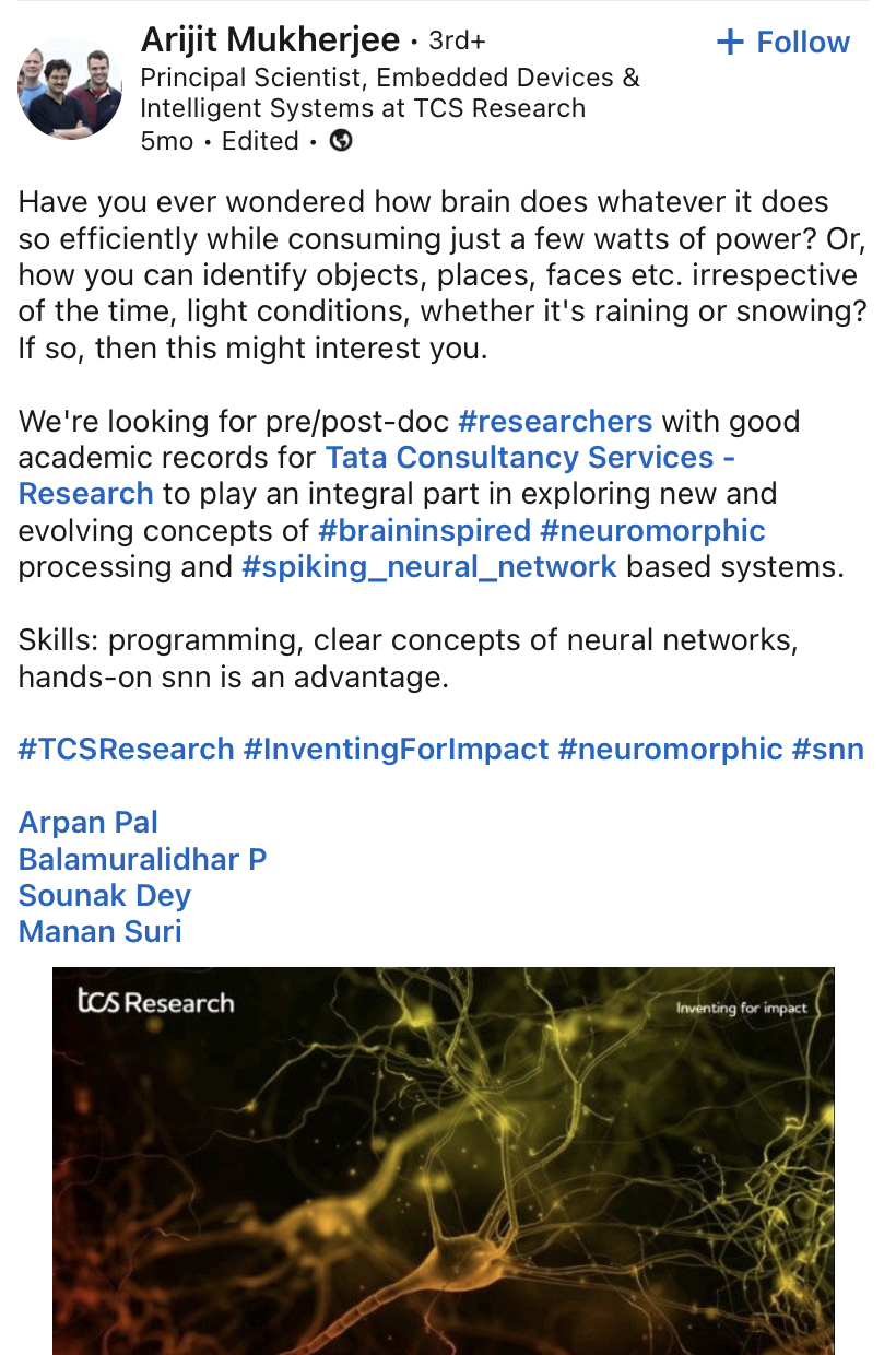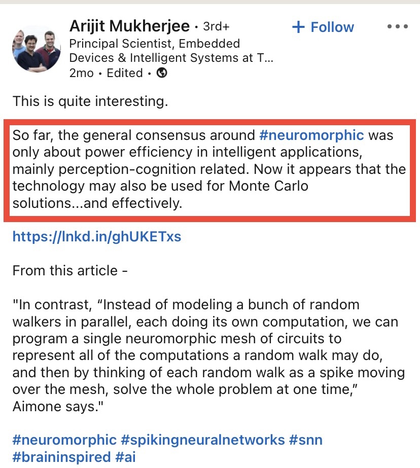 The above reveal at TCS by Dr. Arijit Mukherjee one of Brainchip AKIDA’s greatest fans does not come as a surprise.
