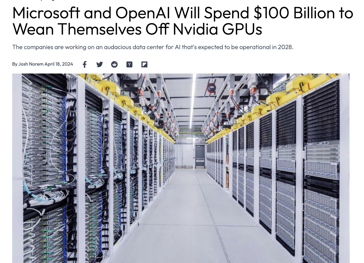 Microsoft and OpenAI Will Spend $100 Billion to Wean Themselves Off Nvidia GPUs