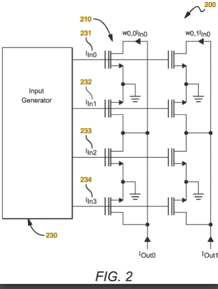 - [0029] FIG. 2 provides a schematic illustrating an exemplary embodiment of an analog multiplier array in accordance with some embodiments;