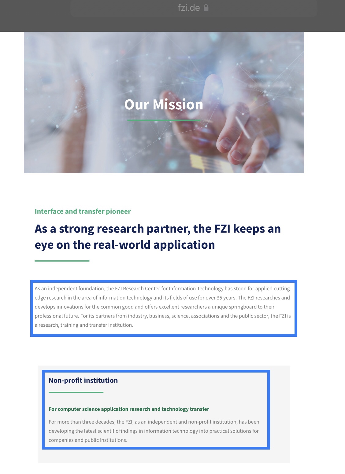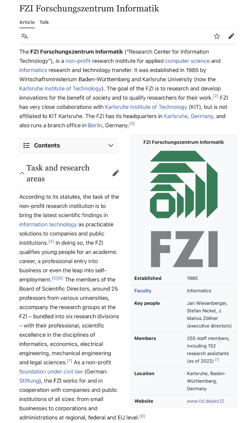 “It is worth noting that FZI researchers are not working in an ivory tower - instead, their research is all about applied computer science and technology transfer to companies and public institutions.”