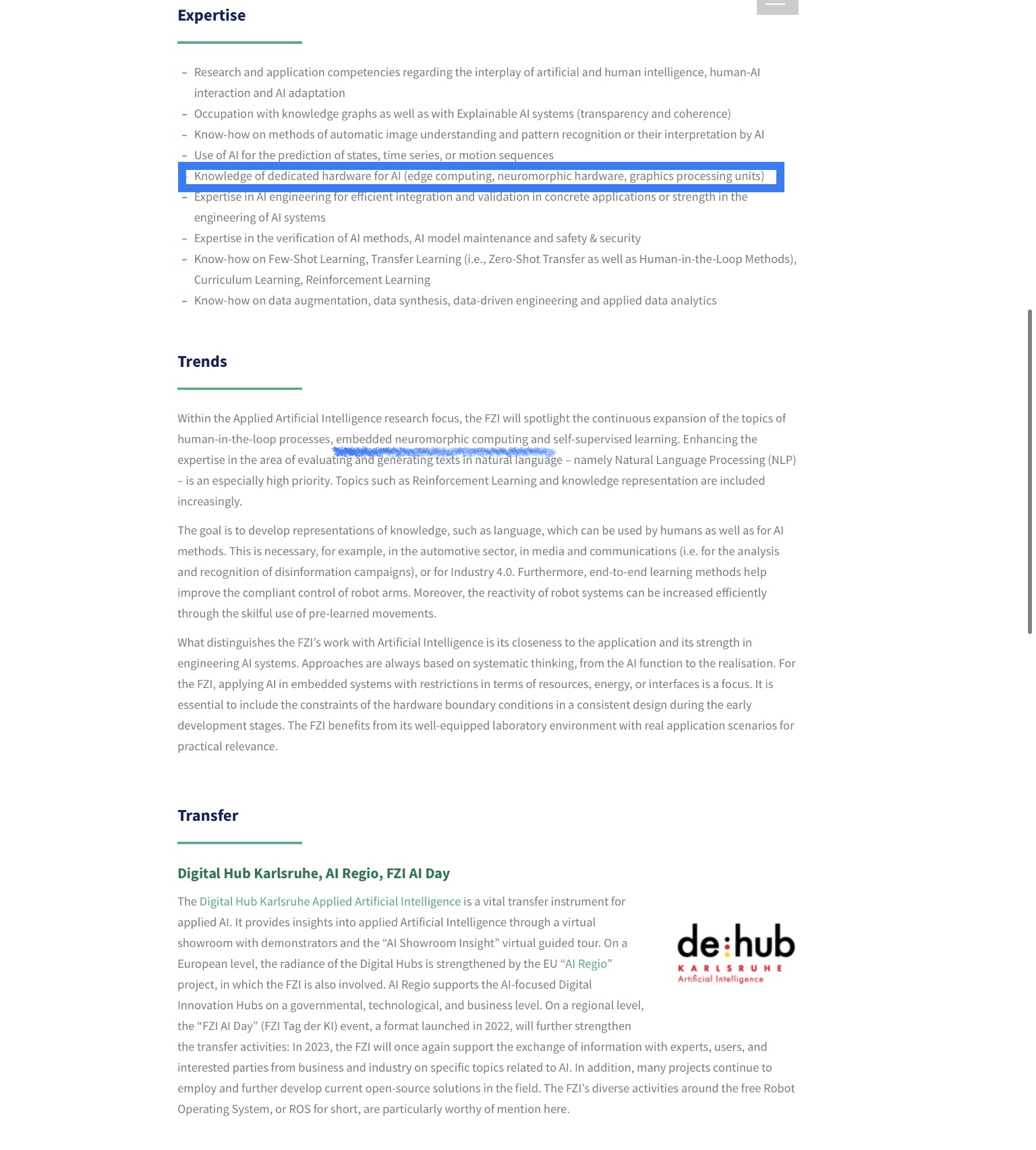FZI currently has a number of other job openings that involve research on SNNs - mostly aimed at students looking for a topic for either their B.Sc or M.Sc. theses (topics range from crowd monitoring, development of innovative neuromorphic hardware, event-based radar processing, vital sign analysis during sleep, the development of an EEG-based BCI to analyse colour vision to event-based sensors in service robots and mobile manipulators), but to me the job description above is the one most likely to involve Akida due to those specific terms used. Some ongoing projects at FZI involving neuromorphic technology have Intel as their partner (eg GreenEdge).