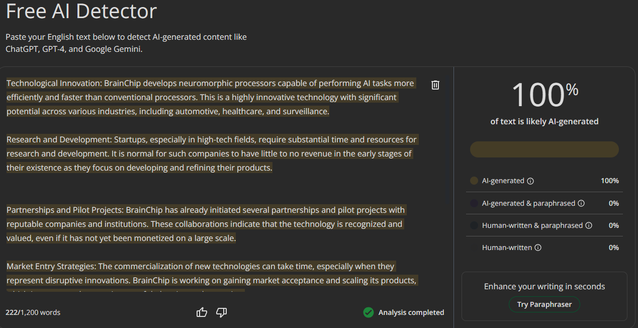 Using ChatGPT to tell us all why Brainchip is a great company is bad practise though. Ai bots are people pleasers, who will create a narrative that sounds close to correct but may not be.