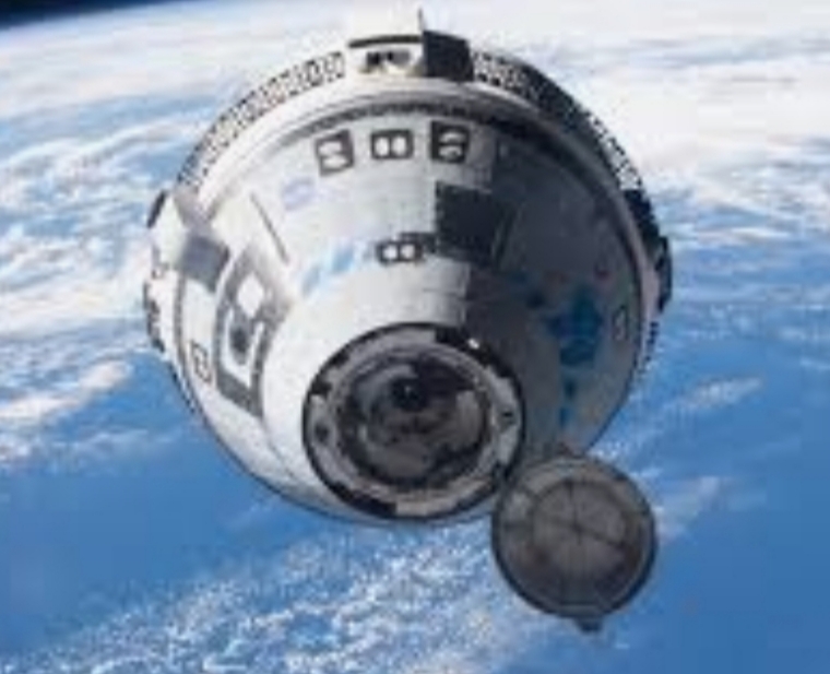 Figure 1. Starliner spaceship in space. Expedition to the International Space Station.
