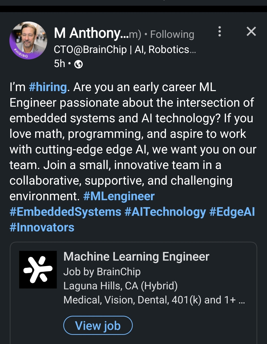 Once again, I just have to ask this question.......name another company in the EDGE AI space who has presented something, anything !!