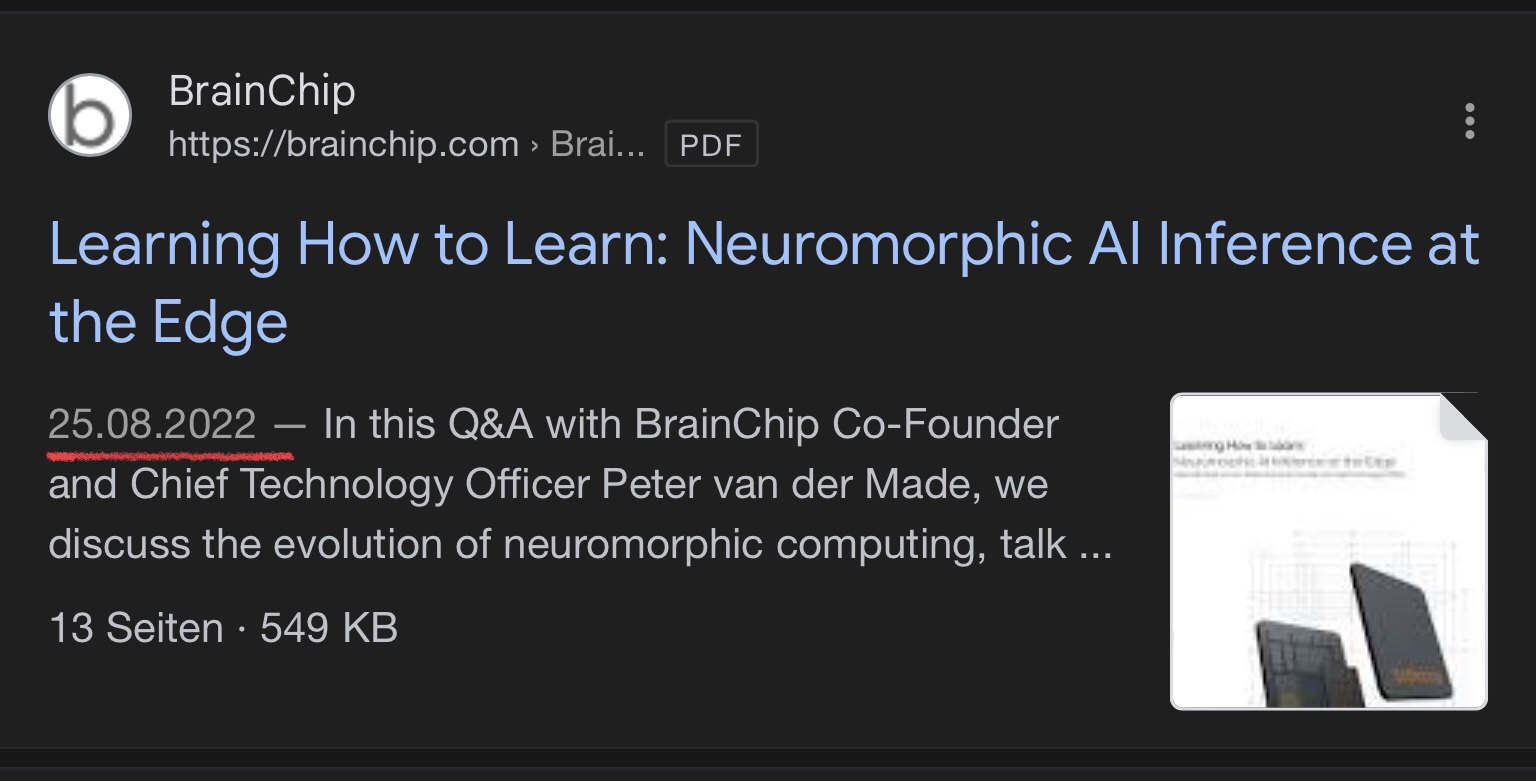As I laid out previously, Ericsson could possibly fall into that category: Although a December 2023 academic paper revealed that six Ericsson researchers had experimented with AKD1000 and “developed a solar-powered AI-enabled ZE-IoT camera device with neuromorphic computing”, there has been no solid evidence to date we are actually engaged with them in that wider, mutual sense, as neither company has publicly confirmed such an engagement.
