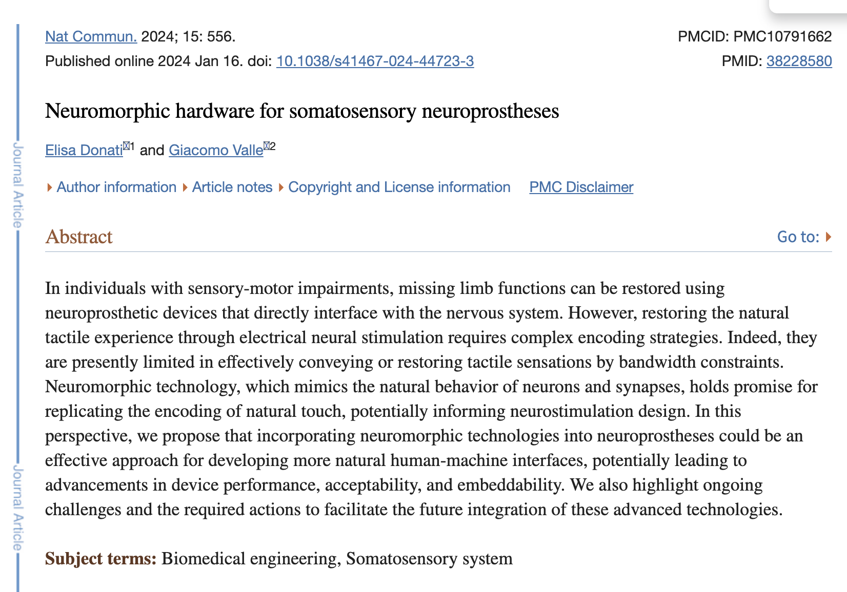 I thought this was also pretty cool! The authors of this research paper thank Dr Chiara Bartolozzi ( who is referred to in the above article) for her insightful discussions. This research paper also mentions BrainChip's Akida!