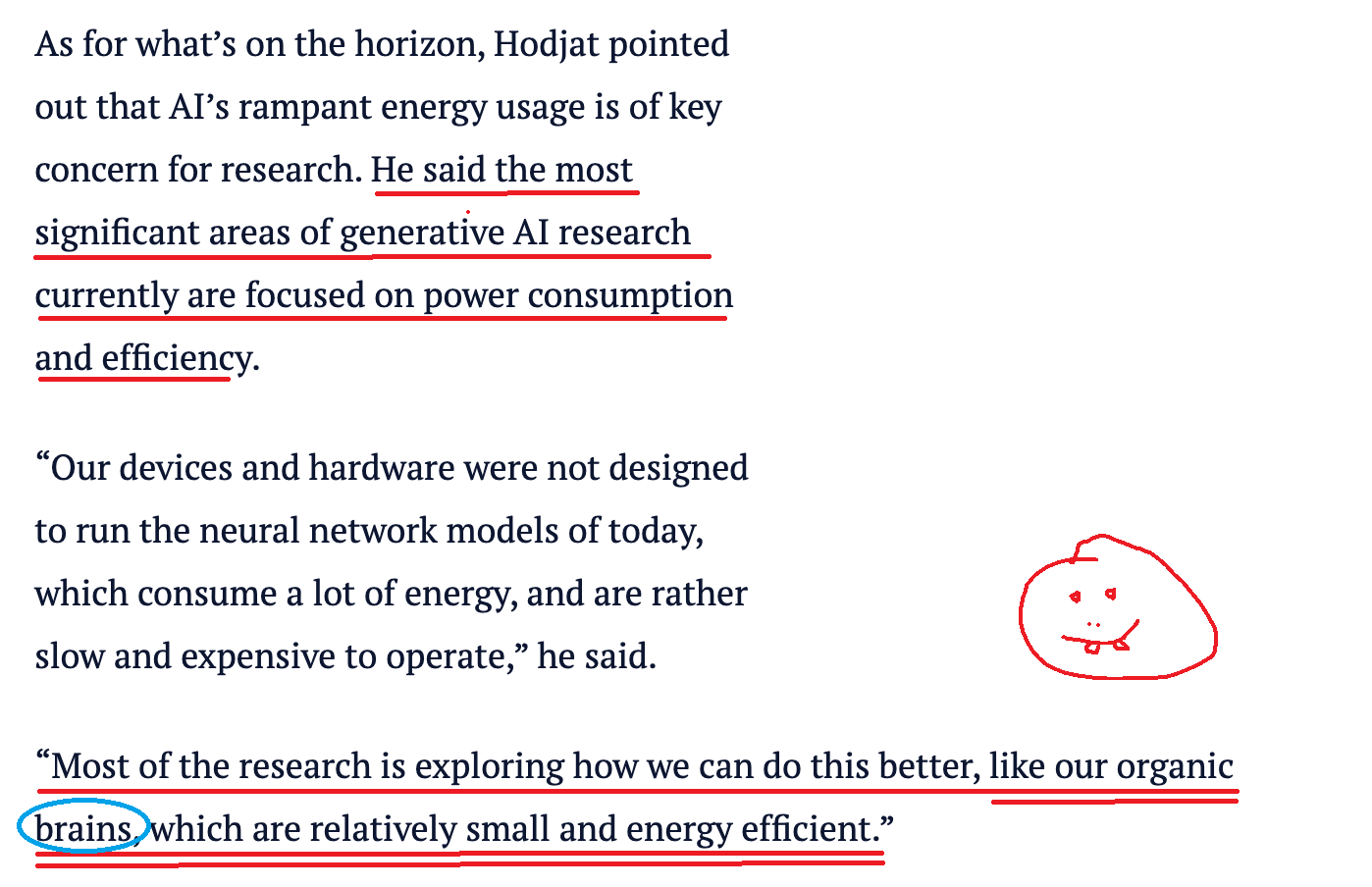 It also states "the most significant areas of generative AI research currently are focused on power consumption and energy efficiency".
