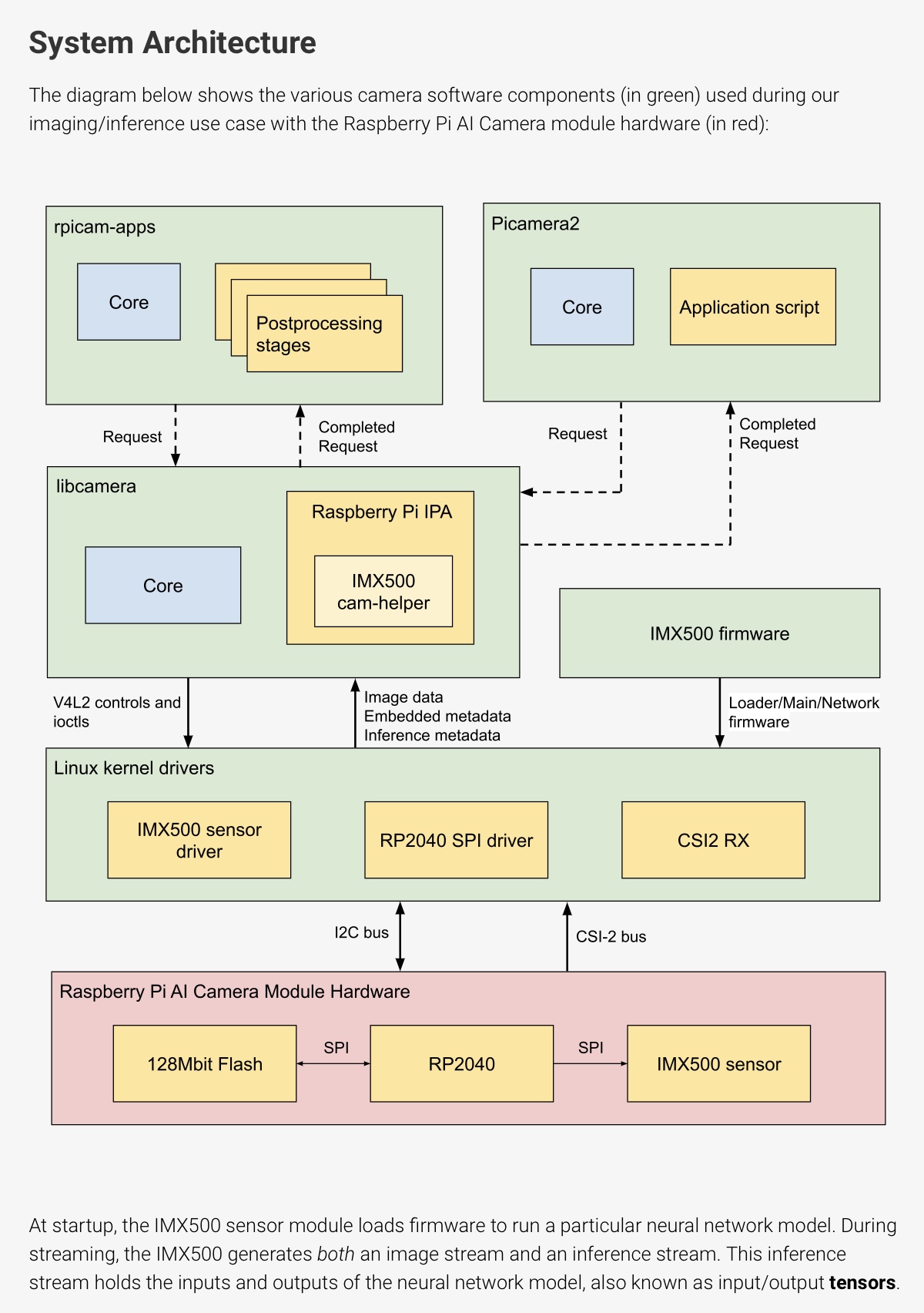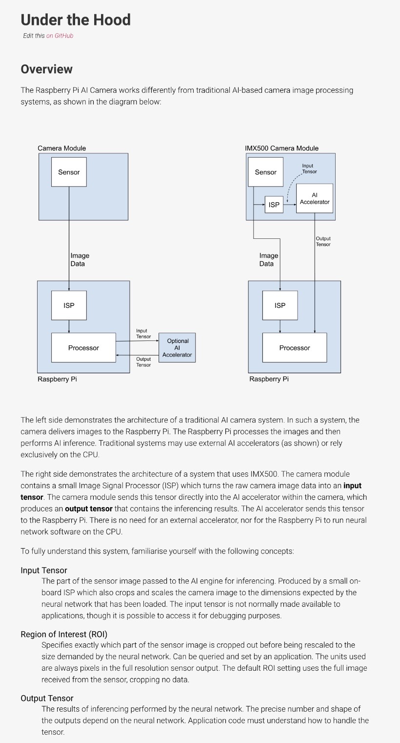 - Because vision data is normally massive, using it to develop AI solutions can require a graphics processing unit (GPU), an accelerator, and a variety of other components in addition to a camera. The new Raspberry Pi AI Camera, however, is equipped with the IMX500 intelligent vision sensor which handles AI processing, making it easy to develop edge AI solutions with just a Raspberry Pi and the AI Camera.