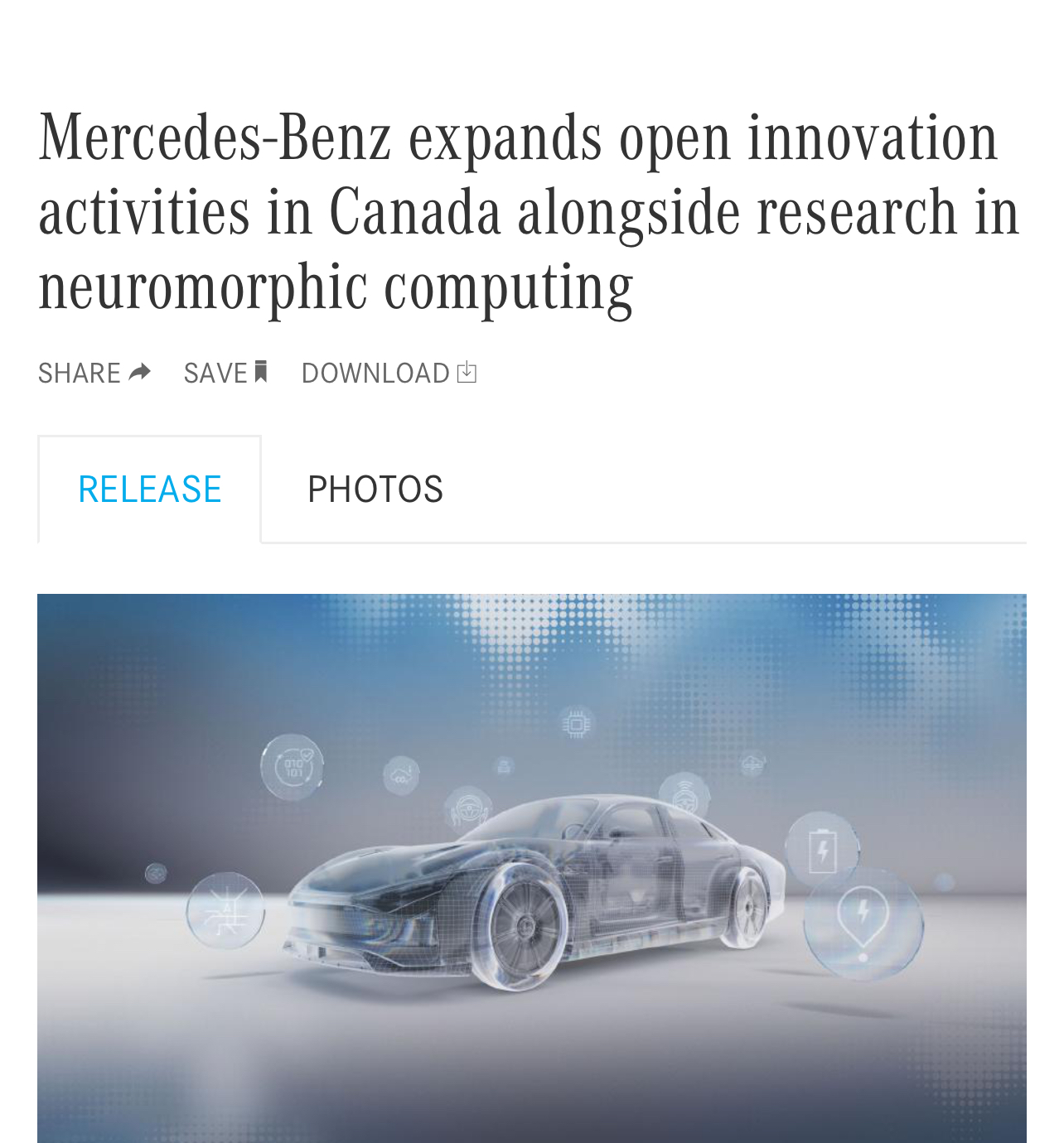 Mercedes-Benz is partnering with the Ontario Vehicle Innovation Network (OVIN), the Government of Ontario's flagship initiative for the automotive and mobility sector. The purpose is to expand startup creation and scouting activities in North America and to promote the commercialization of automotive innovation. The OVIN Incubators Program will focus on identifying and fostering innovation in future software & AI, future vehicle components and future electric drive. Working with startups, and in partnership with OVIN, Mercedes-Benz will help progress promising projects through the provision of its specialist expertise and use cases. Selected projects will also benefit from the international Mercedes-Benz STARTUP AUTOBAHN network. Separately, the company intends to start a research collaboration with the University of Waterloo, Ontario with a focus on neuromorphic computing for automated driving applications. The move complements a range of ongoing Mercedes-Benz R&D activities in Canada.