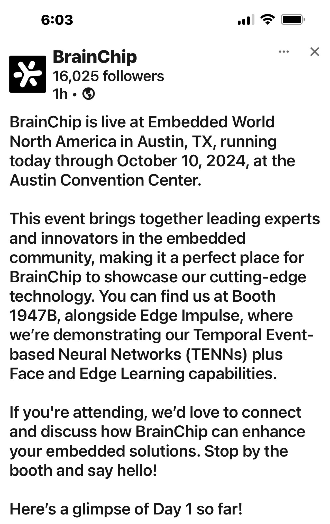 - Research collaboration with University of Waterloo complements existing academic research into neuromorphic computing