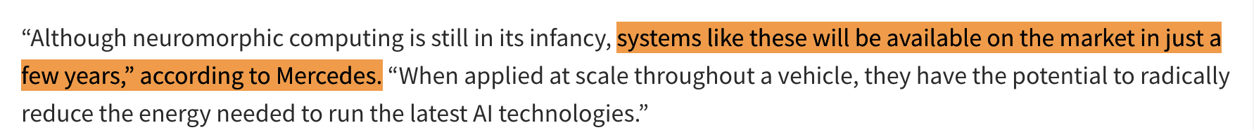 Lots of points raised that cannot simply be glossed over and that suggest to me Mercedes-Benz is nowhere near to implementing neuromorphic technology at scale into serial cars.