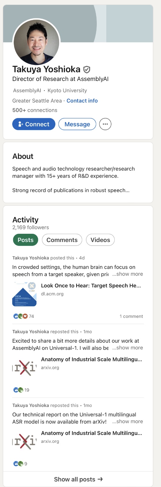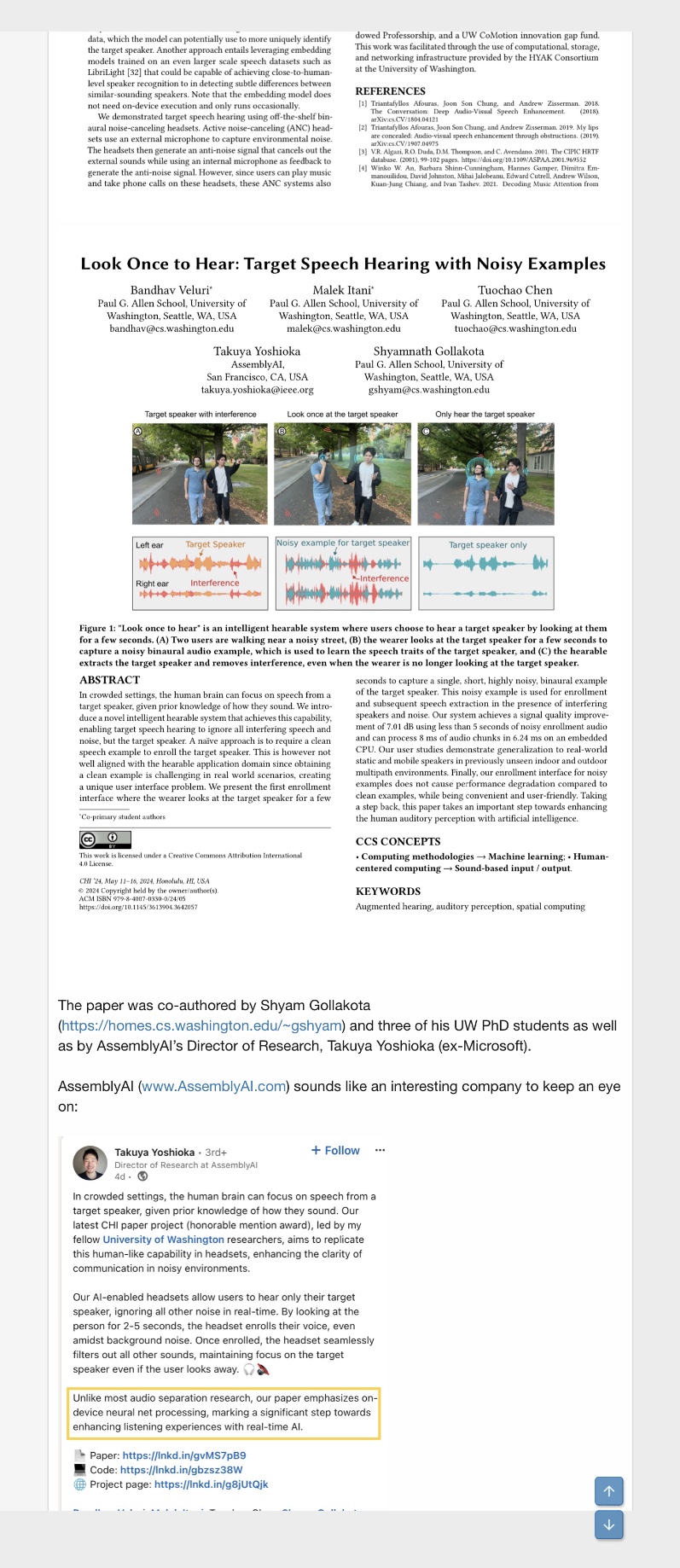 View attachment 64203 The paper was co-authored by Shyam Gollakota (https://homes.cs.washington.edu/~gshyam) and three of his UW PhD students as well as by AssemblyAI’s Director of Research, Takuya Yoshioka (ex-Microsoft).