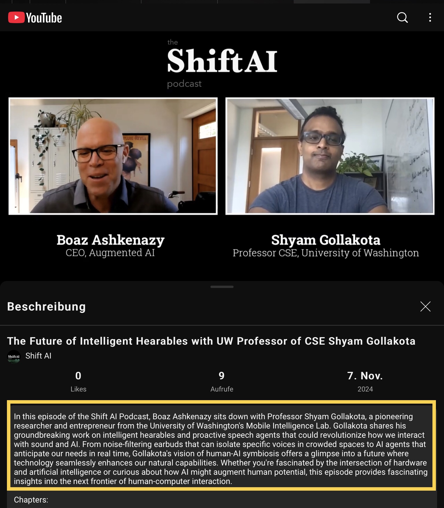 Here is a podcast with Shyam Gollakota on “The Future of Intelligent Hearables” that is quite intriguing when you watch it in the above context (especially from 6:15 min onwards) and when you find out that he and his fellow researchers are planning on setting up a company in the field of intelligent hearables…