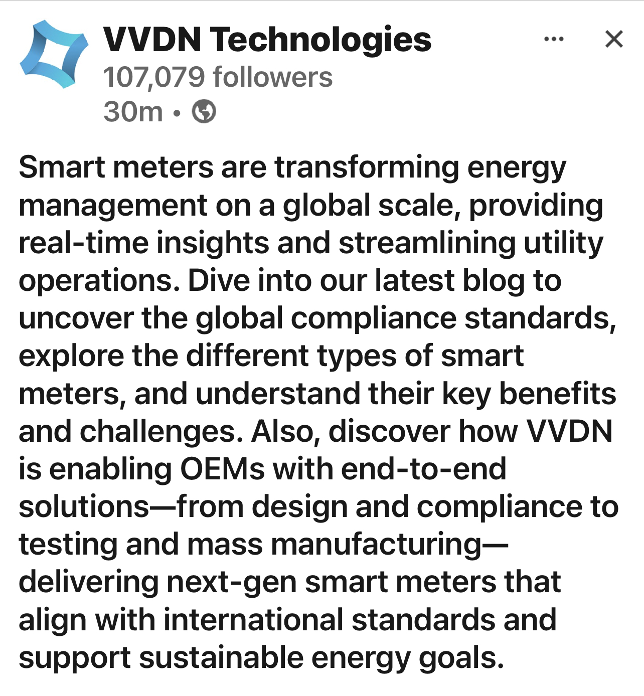 In this blog, we’ll explore the global compliance standards for smart meters, including India, the different types of smart meters available, their benefits, and the challenges they pose. Finally, we’ll dive into how VVDN is empowering OEMs worldwide with end-to-end development and manufacturing of next-generation smart meters.