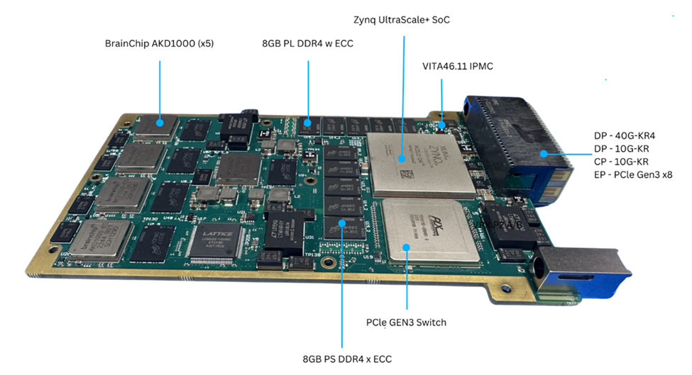 Bascom Hunter’s SNAP Card (Spiking Neuromorphic Advanced Processor) is a high-performance 3U OpenVPX AI/ML processor built for rugged, mission-critical environments. The card is SOSA-aligned, HOST-compatible, and conduction cooled. It combines a Xilinx UltraScale+ RFSoC FPGA with five BrainChipAKD1000 spiking neuromorphic processors to achieve the best of both signal processing and neuromorphic computing – featuring a total of 6million neurons and 50 billion synapses across the card. Unlike traditional machine learning accelerators such as GPUs or TPUs, neuromorphic processors are designed to mimic the biological efficiency of the human brain, allowing the SNAP Card to run multiple ML models in parallel at exceptionally low power — just 1W per model — without sacrificing speed or accuracy while the FPGA enhances input/output operations and performs any desired signal processing tasks. This combination in a rugged, interoperable, and military-hardened package makes Bascom Hunter’s SNAP Card the ideal solution for the concurrent and parallel processing of real-time, multi-modal, and multi sensor data on autonomous, unattended, denied, or otherwise battery constrained military systems.