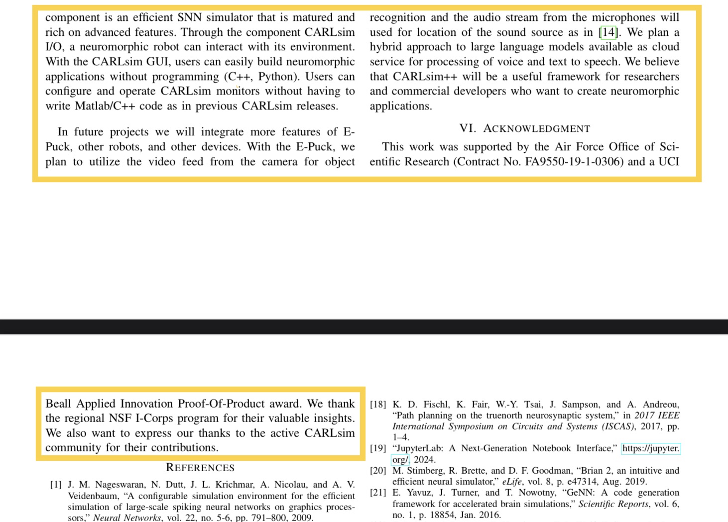 Lars Niedermeier’s and Jeff Krichmar’s April 2024 publication on CARLsim++ (which does not mention Akida) ends with the following conclusion and the acknowledgement that their work was supported by the Air Force Office of Scientific Research - the funding has been going on at least since 2022 -