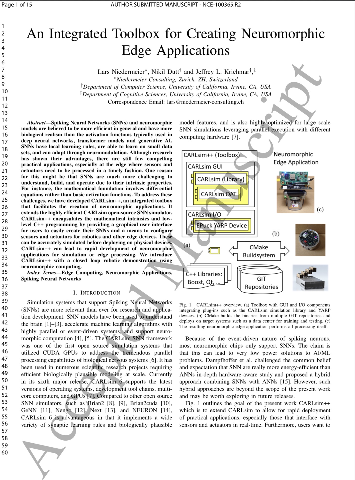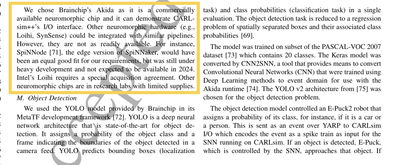 The authors gave a tutorial on CARLsim++ at NICE 2024, where our CTO Tony Lewis was also presenting. Maybe they had a fruitful discussion at that conference in La Jolla, which resulted in UC Irvine’s Cognitive Anteater Robotics Laboratory (CARL) team experimenting with AKD1000, as evidenced in the video uploaded a couple of hours ago that I shared in my previous post?