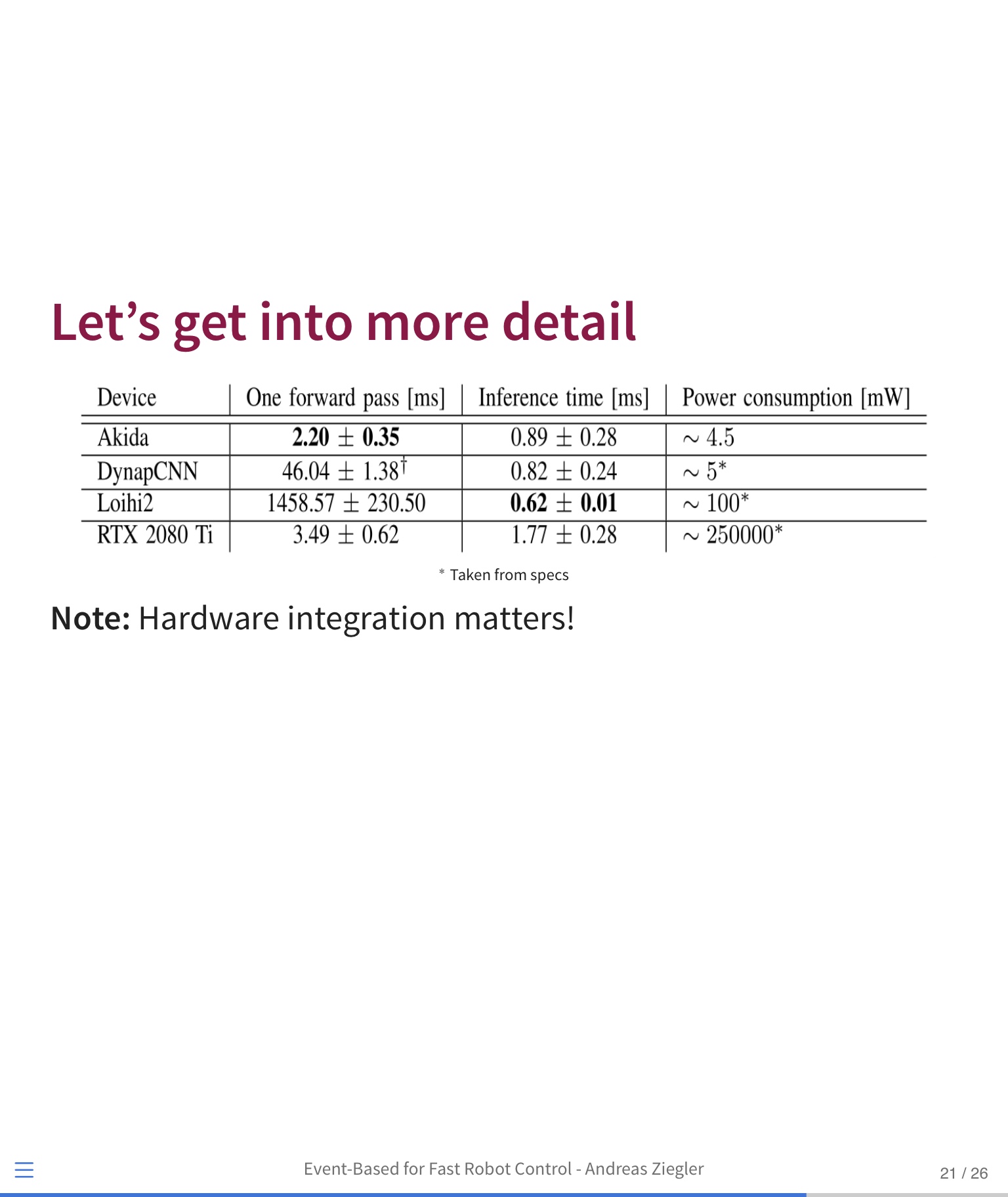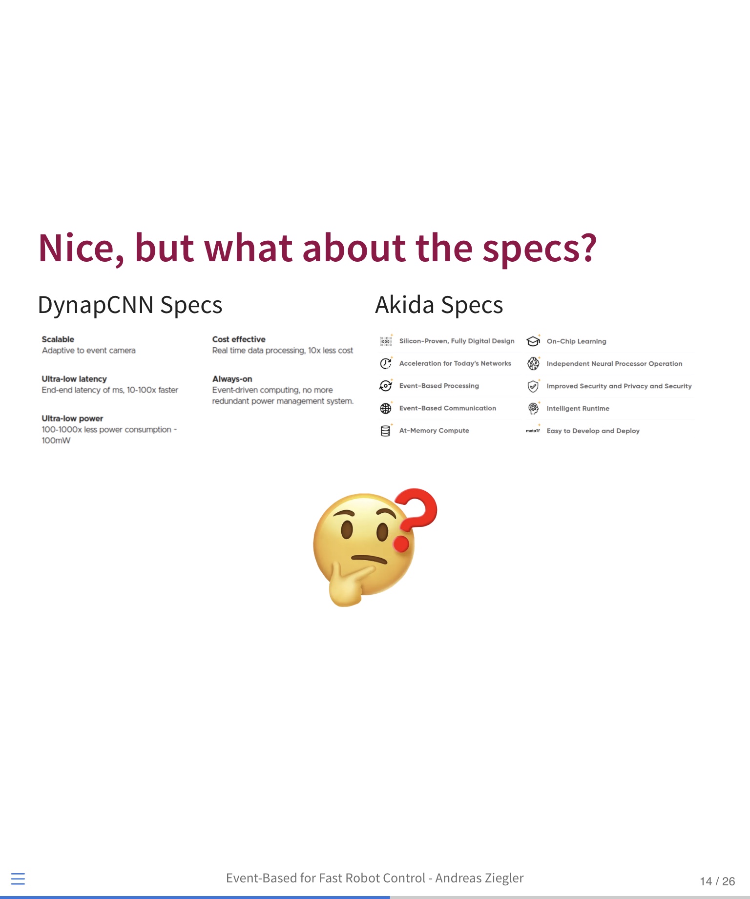 In all fairness, it should be highlighted that Akida’s superiority was at least partly due to the fact that AKD1000 is available as a PCIe Board, whereas SynSense’s DynapCNN was connected to the PC via USB and - as the excerpt Gazzafish already posted shows - the researchers did not have direct access to a Loihi 2 edge device, but merely through a virtual machine provided by Intel via their Neuromorphic Research Cloud. The benchmarking would obviously yield better comparable results if the actual hardware used were of a similar form factor: