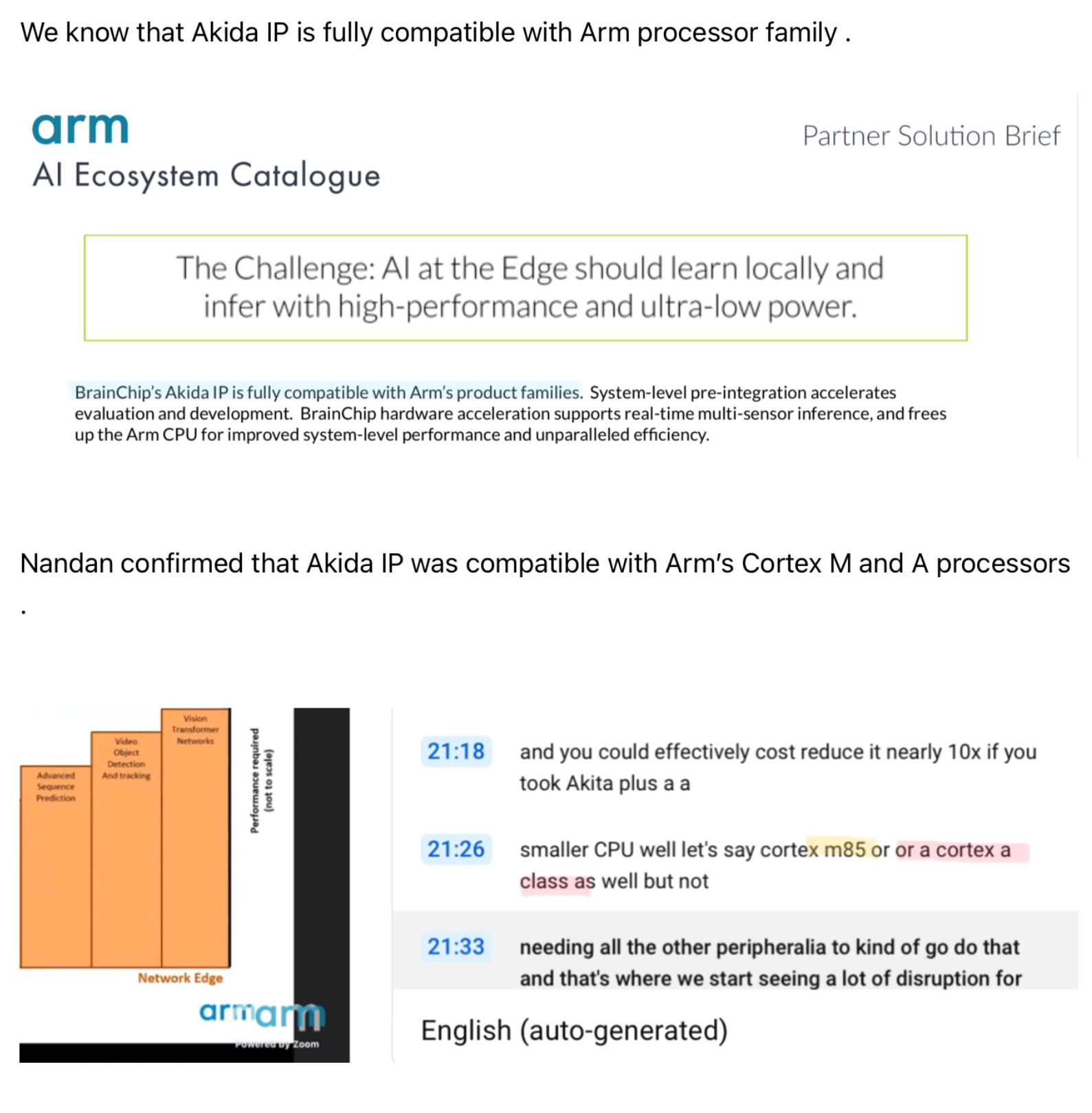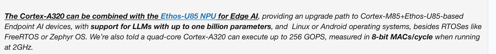 Keep up Manny , Cortex A confirmed . I myself have absolutely no doubt‘s that Arm’s Ethos U85 is Akida , as we are seeing far to many clues at this point in time .