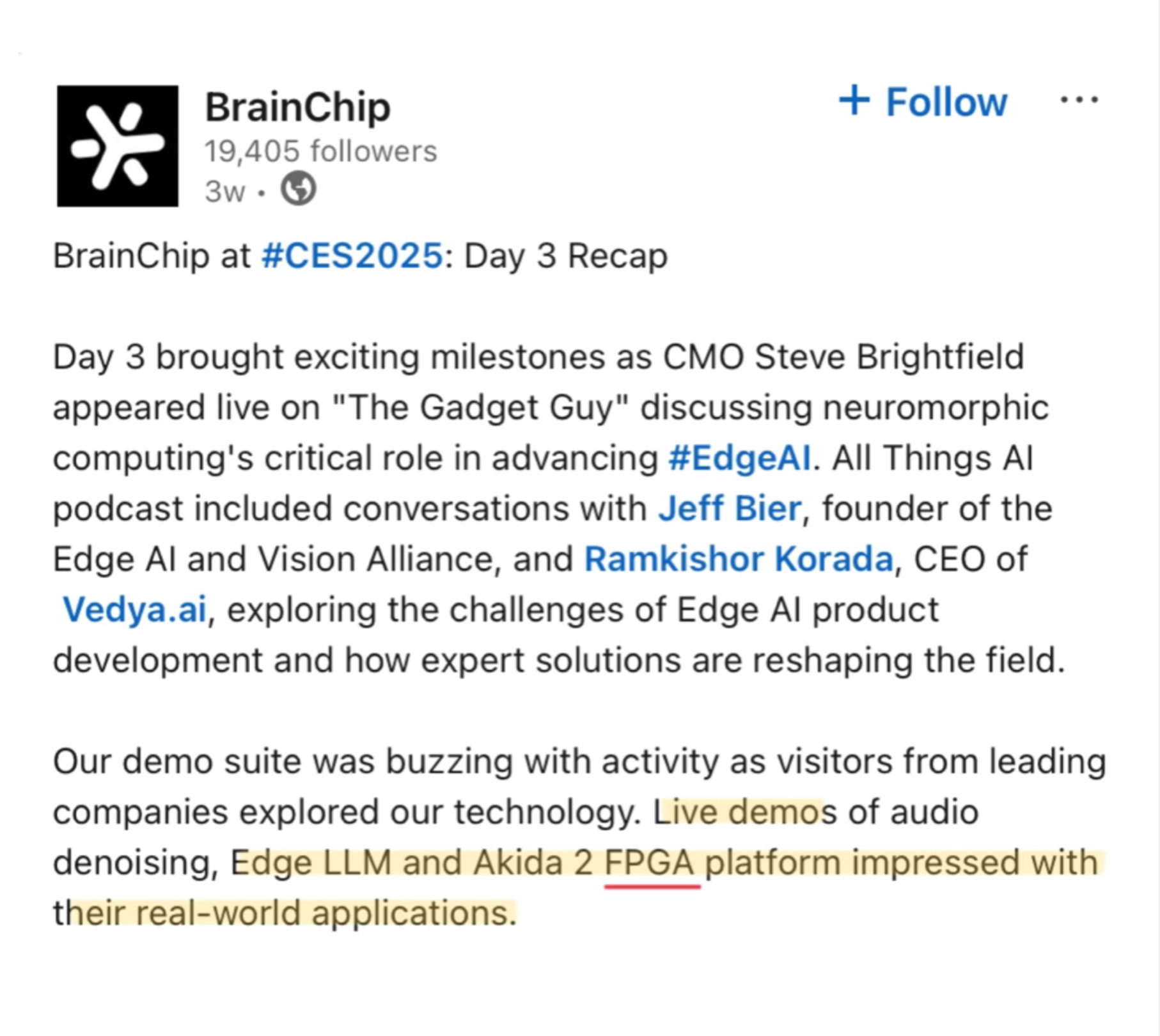 Positive news now, will be potentially "troublesome" for them, but very beneficial, in the amplified effect, for BrainChip getting the best out of the LDA deal.