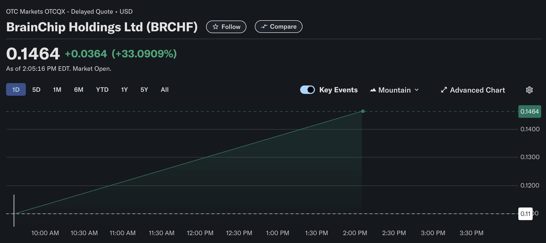 Someone probably brought a $1000 worth for it to rise that much over thereBrainchip up 33% (as of this post) on tariff backdown. The level of pressure the white house and congress were getting was untenable. Let's see where it ends at 4PM, and where it picks up on the ASX.