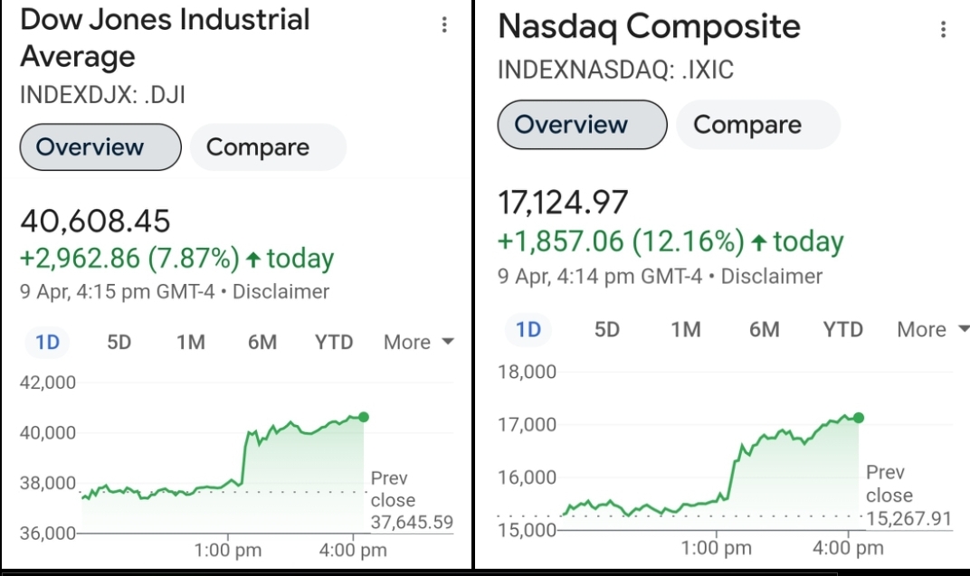 Trump buckles....tariffs in abeyance for 90 days.