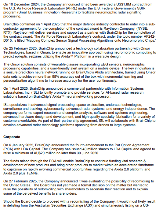 1. Akida 2.0 Rollout:Timely delivery of Akida 2.0 silicon and successful adoption by lead customers are paramount. This generation's features (8-bit, ViT/TENN support) appear necessary to compete effectively in the advanced edge AI market. Further significant delays could severely impact competitiveness.