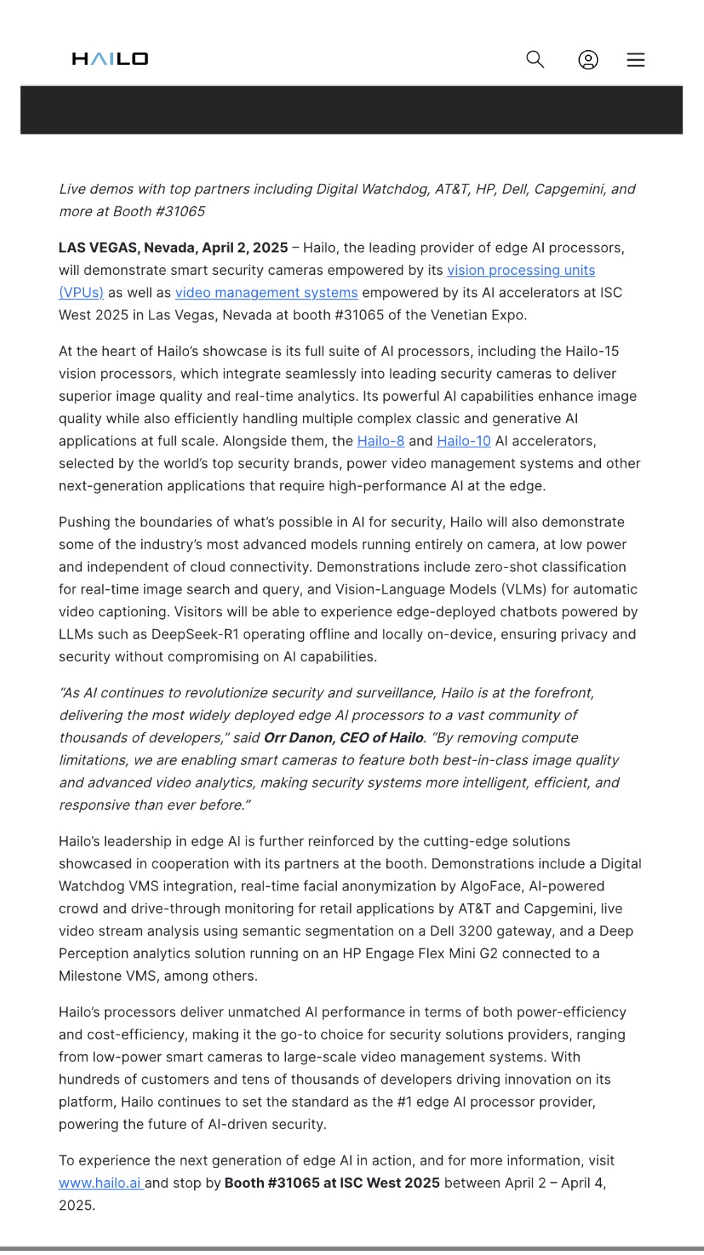 By the way, there’s a familiar face working for MemryX these days: Chris Stevens, our former VP WW Sales.
