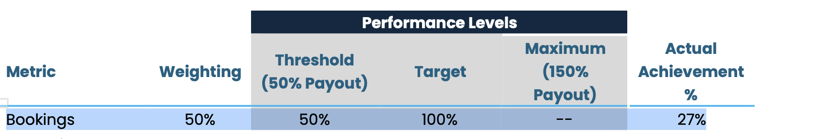 So take 2024 in the table below for Sean's "Target" bookings, if he did not achieve the goal, he still got 50% of his bonus, if he met the target he got 100% of his bonus, but shareholders did not know the dollar value of his bookings target (for Sean or any one else receiving bonuses).