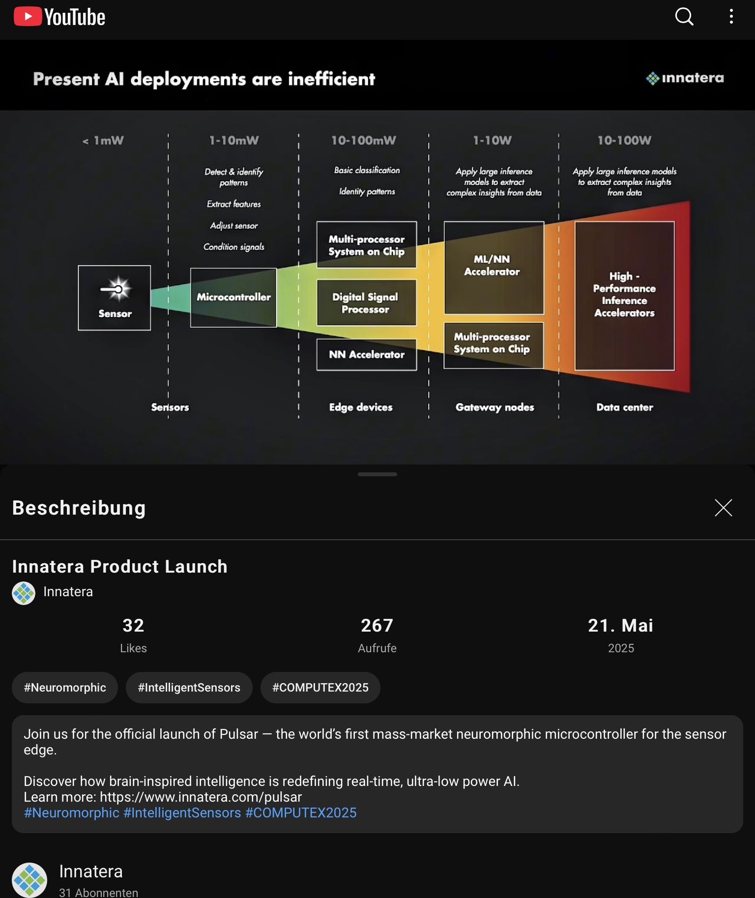 Video of Innatera’s Product Launch of Pulsar earlier today at Computex 2025: