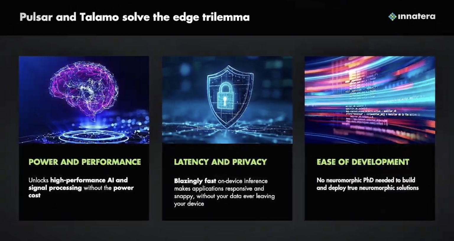 "Innatera's Pulsar marks a leap forward in edge intelligence. As a partner, we see their neuromorphic approach redefining what's possible in ultra-low-power, always-on AI – exactly the kind of innovation the edge AI ecosystem needs to thrive," says Pete Bernard, CEO, EDGE AI FOUNDATION.