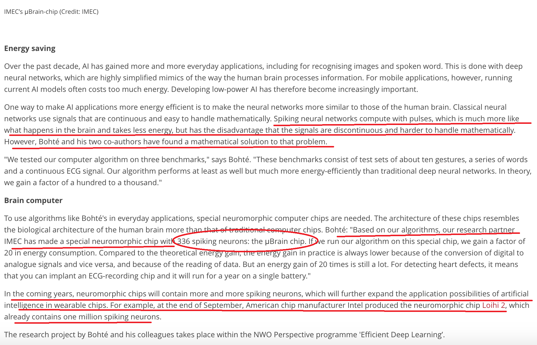 I did a little more research on IMEC and their self-proclaimed "special neuromorphic chip" which I discovered has a grand total of 336 spiking neurons. Not particularly impressive considering each Akida NSoC has effectively 1.2 million neurons and 10 billion synapses.