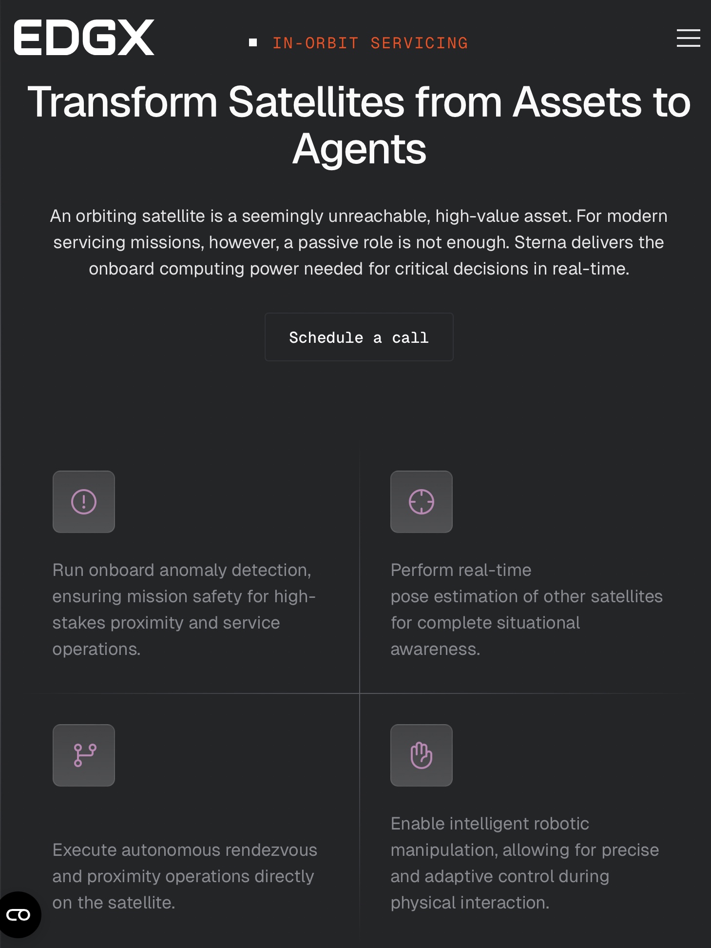 EDGX's engineering and design combine commercial AI acceleration with spacecraft-grade reliability, enabling satellite constellation operators to access previously unattainable levels of onboard computing power. Customers are using EDGX's Sterna DPU and its associated SpaceFeather software for a variety of applications.