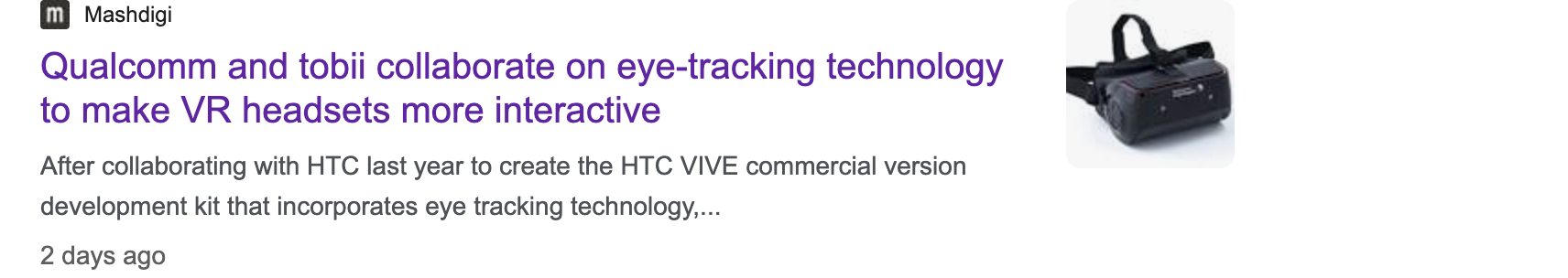 • Tobii + Qualcomm: Tobii’s eye-tracking technology is a native feature in Qualcomm’s Snapdragon XR reference platforms—enabling applications like foveated rendering for VR/AR headsets.