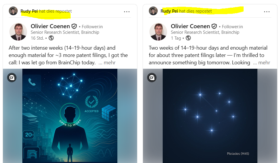Looks like Rudy Pei dislikes that Olivier was fired and wants to show the world now how bad BrainChip is.