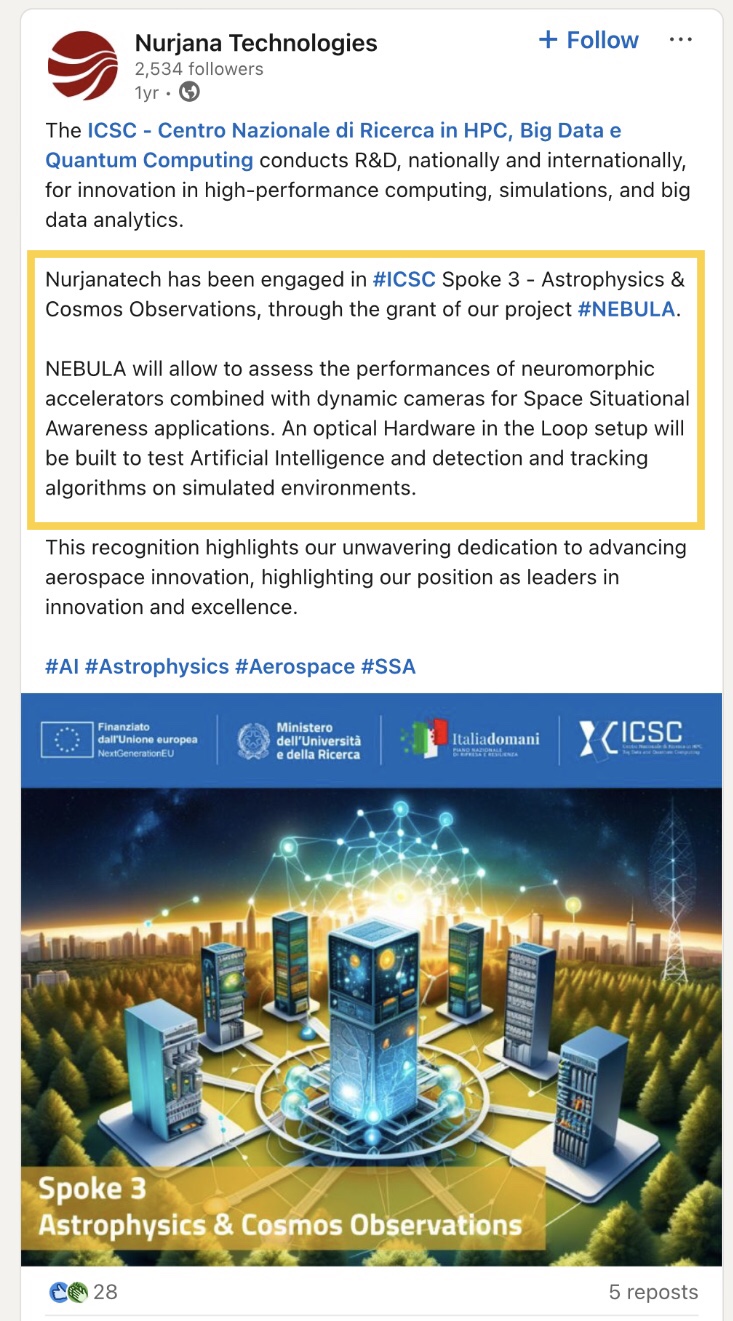 Although the initial focus of the NEBULA project - as described in the following September 2024 presentation - rather appears to have been Space Situational Awareness (SSA):👇🏻