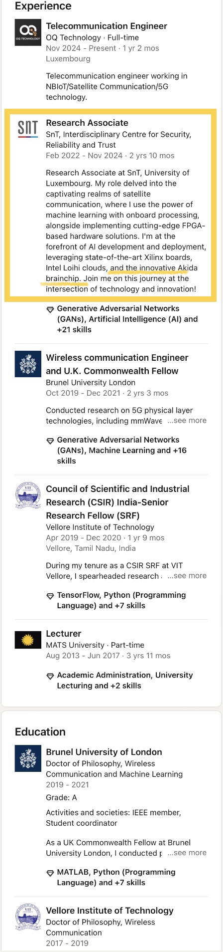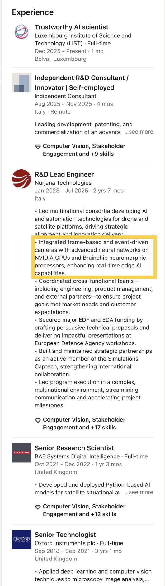 Her former colleague Geoffrey Eappen, who also worked with Akida while conducting research at Uni Luxembourg’s SnT, already switched employers within Luxembourg more than a year ago and has since been working for OQ Technology as a Telecommunication Engineer.