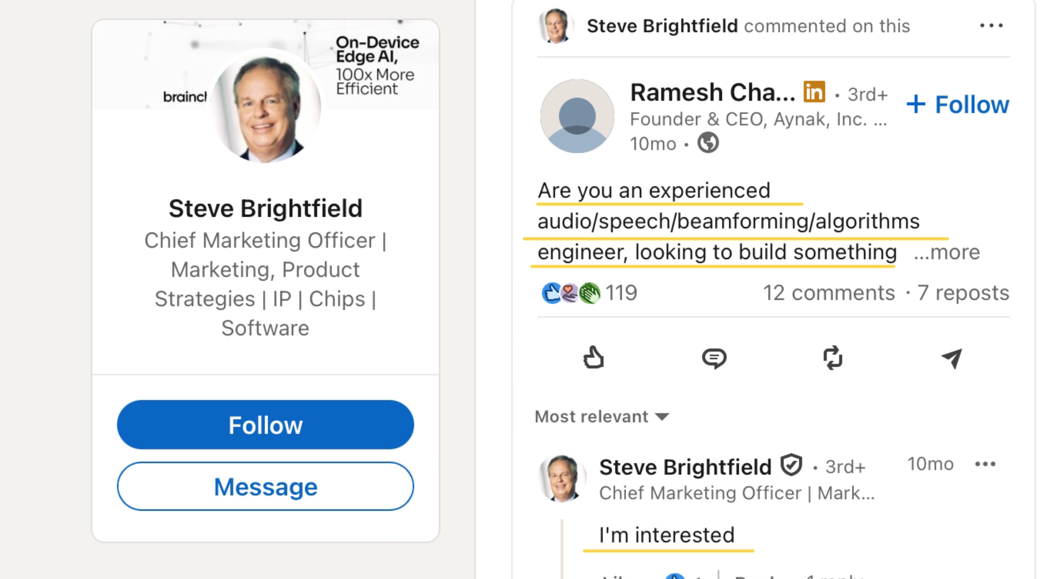 - Be the customer’s trusted advisor and main interface between Customers and BrainChip.