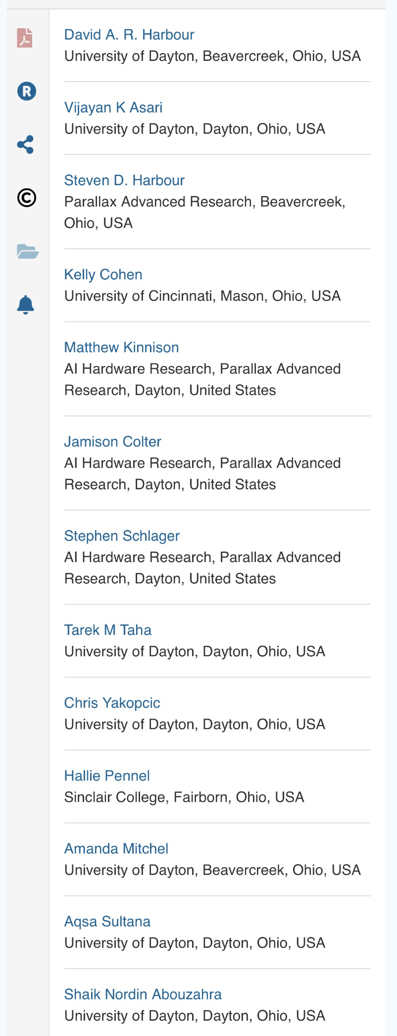 https://briskcomputing.com), which has won four Phase I SBIR and two Phase II SBIR awards (5x NASA, 1x DoD) since 2020 that were all related to neuromorphic computing, is registered at the residential address of Tarek M. Taha, one of the University of Dayton neuromorphic researchers who has been collaborating with Steve Harbour for years: